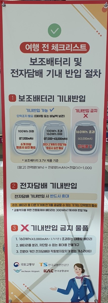 청주공항 보조배터리 및 전자담배 기내반입 절차와 기준